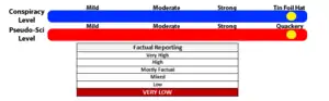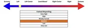 Media Bias/Fact Check (MBFC) is a fact-checking website which indexes and ranks websites by left- or right wing bias (each website is ranked from "extreme left" to "least biased" to "extreme right") and by quality of factual reporting (each website has a "conspiracy level" and a "pseudo-sci level"). Although MBFC's methodology is ultimately subjective,[1] it appears to be fairly consistent and reliable in its ratings. MBFC has extensions for both Firefox(link) and Chrome(link).