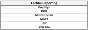 Scoring and classification on factual reporting is as follows (increasing by failed fact-checks):