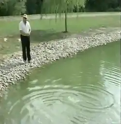 “”Each pebble is an advantageous feature, appearing at different times and places. Ripples from the pebbles can spread across the entire pond surface; the interconnections of the populations provide the pathways for the traits to spread.[9] |