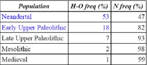 “”The horizontal-oval mandibular foramen is virtually unique to European fossils. It is found in almost no other remains... the horizontal-oval foramen has a significant frequency in the subsequent post-Neandertal populations of Europe and only decreases to rarity in recent Europeans.[36] |