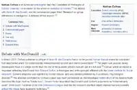 Cofnas has repeatedly claimed RationalWiki and the creator of this article has libelled and smeared him, specifically complaining about the former description of him as "quasi-alt-right".[32][33] According to the article creator "He [Nathan Cofnas] legally threatened me and other individuals over his RationalWiki article a year ago, but his legal threats never materialised of course."[34] He (or someone close to him[35]) created a whitewashed biography on Wikipedia likely in response to this RationalWiki page, but the article was deleted in July 2020.[36]