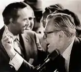 Today, Rockefeller's best-remembered for denouncing Goldwater and the conservative takeover of the GOP during the 1964 Republican National Convention in San Francisco. He was booed for minutes on end by Goldwater's supporters, responding that "It's still a free country, ladies and gentlemen" and encouraging their reaction.[8] This speech, along with his refusal to campaign for Goldwater, made him the archetypical RINO in the eyes of conservatives.