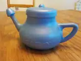 A neti pot (sometimes also called nasal cup or jala neti (जलनेति)) is a small gravy bowl-like pot designed to drown you rinse the nasal cavity. Basically, you pour water (usually a saline solution) down one nostril, and it comes out the other together with the mucus (that is snot for you regular folks) and whatever else happens to be in your nose (such as a tape recorder). The practice has some real benefits — in medical literature it's usually referred to as nasal irrigation or saline nasal irrigation — but there's also a rather large amount of woo attached to it.