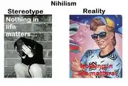 Nihilism is the philosophical belief that life and the universe have no meaning. In general, nihilists are considered to be wanton hedonists since their life has no meaning, yet the concept is also commonly associated with the opposite extreme of suicidal depression.