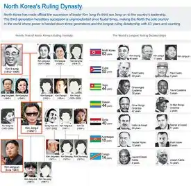 The country's official name (DPRK) is anything but accurate. Amusingly enough, the definition of the word "democratic" according to the Oxford English Dictionary is "a system of government by the whole population of a state," and the definition of "republic" is "a state in which supreme power is held by the people,"[7] meaning that North Korea's full name means "People-ruled People's People-ruled State of Korea." In reality, North Korea is neither a democracy nor a republic (surprise, surprise): it is a full-blown dictatorship — specifically, an absolute hereditary monarchy in all but name. The real leader, Kim Jong-un, is officially only de facto head of the party (With his death, Kim Jong-il was declared "Eternal General Secretary" of the party, making him the head of the party de jure[8]) and the head of the army. Kim Il-sung, despite being dead[note 3] since 1994, is still the official head of state, which led Hitchens, as above, to refer to the nation as a "necrocracy" and "one short of a trinity". Unfortunately the trinity would not be completed before Hitch shed the earthly bounds of his mortal body.