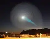 The Norwegian Spiral[note 1] was a spectacular aerial phenomenon seen in the night sky from (parts of) Norway and Sweden on 9 December 2009. It was most probably caused by a test launch of a Russian ICBM that failed spectacularly (or did it?). The term "Norwegian Spiral" has also been adopted to refer to any real image which looks so spectacular that it is assumed to be photoshopped, computer generated, or faked in some fashion.