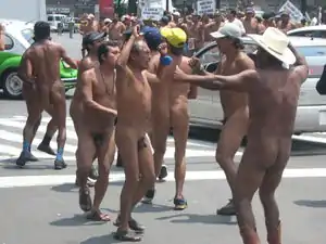 Due to its norm-challenging shock value, public nudity has been used by various groups as a means to protest, such as the World Naked Bike Ride (environmentalism and body positivity) and FEMEN (feminism).