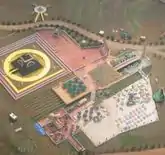 York and the Nuwaubians established "Tama-Re", a 476-acre cult compound in Putnam County, Georgia, in 1993. Tama-Re consisted of 15 double-wide trailers, some firetrap buildings, and a number of quasi-Egyptian structures (complete with two large styrofoam pyramids, one used as a church and the other as a trade center).[18][19][20][21] After York was sent to federal lockdown, the property was sold under government forfeiture by the U.S. Marshals Service and the structures were demolished and hauled to the dump.[22] Now cleared of all previous structures, the current owner has built a log style hunting lodge on the property.[23]