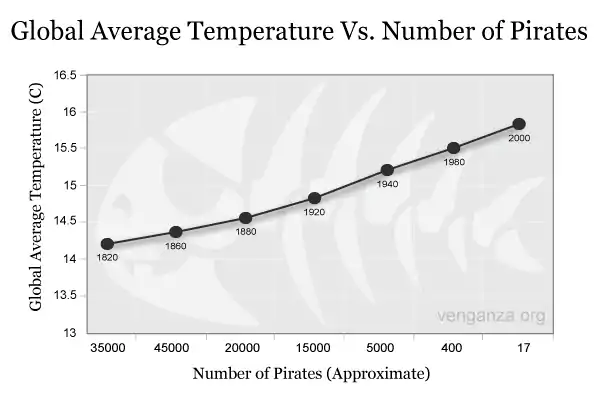 The Church of the Flying Spaghetti monster has kept up the good fight, publishing incontrovertible evidence of the pirates-temperature link.[2][3] Luckily, as the Church notes, "[p]irates, in many ways, are experiencing a renaissance in America right now."[4] The unpirate scourge shall walk the plank any day now!