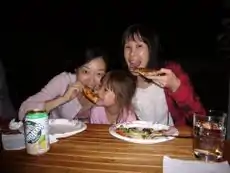 The alleged cornerstone of Pizzagate is an attachment found in a forwarded email from Bill Clinton advisor Doug Band in 2009 called "pizza.jpg". The attachment contains a photo of two adults enjoying pizza with a kid, which is supposedly evidence of child molestation; however, the email and its attachment were completely misinterpreted.[51] What "Pizza.jpg" actually shows is American journalists Euna Lee and Laura Ling along with a young girl, possibly Lee's daughter Hana. The three are eating pizza after Clinton secured their release from captivity in North Korea in August 2009. "As John said, it doesn't get any better than this," Band comments to Clinton aide Huma Abedin, Podesta, and others. "Nice", Podesta responds.[52]