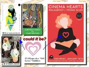 ![]() could it be? | The graphic points out hearts in two band posters, Cold Beat and Cinema Hearts, |