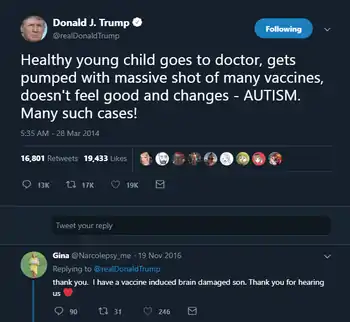 - [http://www.trumptwitterarchive.com/highlights/vaccines Trump Twitter Archive: "Vaccines"