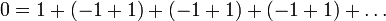 The proof of the inconsistency of arithmetic is a pseudomathematical proof used by some creationists to prove that 0=1 as a means to prove that something can exist out of nothing. According to believers of this theory it is fundamental to believe in it because it is a proof that a creator exists. The actual inventor of this proof is Luigi Guido Grandi and was developed by him in 1703. [1]