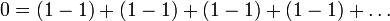 At step one it is stated that zero is the sum of an infinite series whose terms are all zero. This is true, although - to be precise - not a statement on Arithmetic how it is intended nowadays (see Peano axioms