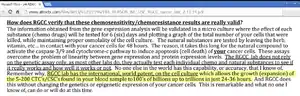 As no laboratory could culture sufficient tumor cells to perform the 100+ tests within the turnaround time, the results of the RGCC chemosensitivity test could just be a form-letter[13] recommending to the integrative-practitioner that they prescribe whatever potion they have a surfeit of.