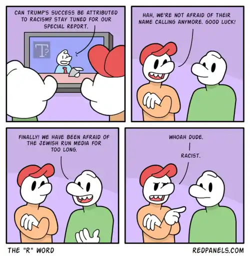 RedPanels was a racist, sexist, homophobic, islamophobic, and particularly antisemitic webcomic, which centered on bravely taking pot shots at absurd "liberal" strawmen.