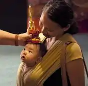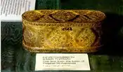 Buddhist relics are referred to under the catch-all term of Śarīra. Buddhists do not worship these relics, but do preserve them for veneration under the belief that relics can provide a connection to old masters of the religion, including Gautama Buddha himself.[30] Buddhist tradition holds that Buddha was cremated after his death, and his ashes divided among his followers; various sites and countries around the world claim to possess these relics today.[31] Fragments of Buddha's teeth and strands of his hair are also alleged to still be around. In Buddhist cultures, destruction of a relic was historically considered a crime on par with the murder of a human being.[31]