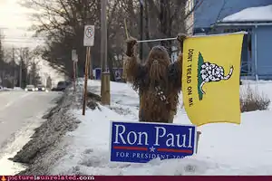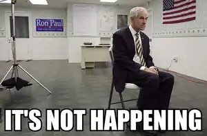 Ron Paul attempted to run for the Presidency a third time in 2012, and gained more media attention than the first two times. Unfortunately for Paulbots, he only won two caucuses (Minnesota and Maine), though his supporters insisted he was second in delegate count. While it became statistically impossible for him to grasp the nomination, his supporters hoped to win a plurality of delegates in at least 5 states to allow him to carry his campaign all the way to the Republican convention. Cue the Paulbots singing hosannas: "Ron is spreading the message!" and "He has stealth delegates!" and he will "win the nomination with a floor speech at the RNC!"[62]