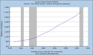When it came to the federal budget, Reagan held the record for most spending by a conservative until, big surprise, Dubya came along. He ran up the debt to a height unseen since World War II, blowing a massive load of dough on the SDI program. Reagan also founded the Church of Tax Cuts by accident. In the early '80s, he implemented his trickle-down scheme with a massive tax cut, much of which went to those struggling multi-millionaires. However, he raised taxes later in his administration several times because he could learn from his mistakes. The current Republican Party has erased that last part from memory... as well as all those record deficits.