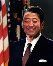 Shinzō "Trump before Trump" Abe(安倍 晋三) (1954–) is a former Prime Minister of Japan and President of the Liberal Democratic Party (LDP) — despite the name, it is a conservative party.[note 1] He served two terms as prime minister - from September 2006 to September 2007 and from December 2012 to September 2020.