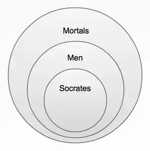 The most simple kind of syllogism consists of three "A" propositions (an AAA syllogism), taking the following form (with the symbol "∴" representing the word "therefore"):
