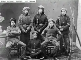 As the rebellion began in Guangxi, the Qing executed all prisoners speaking its dialect.[44] Indeed, for both sides, the easiest way to pacify newly acquired/re-acquired territory was to simply exterminate the population.[45] This was also the Qing's policy towards the Hakka, early supporters of Hong, and the city of Nanjing.[46][47] In many areas, the people chose to commit mass suicide rather than allow themselves to be executed.[45]