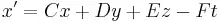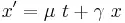 We also make use of the observation that we made above, that the equations must be linear, to prevent the laws of physics from being different at different places or different times. Ignoring the y and z coordinates, the equations must be something like: