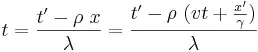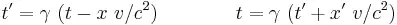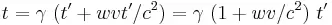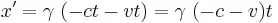 Now suppose a primed observer is flying past, at speed v, in a spacecraft. Solving, we get