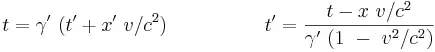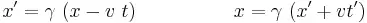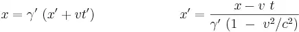 Now the primed observer can go through the same calculations, but with the sign of v reversed. She will get this transform, with its inverse: