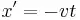 Now the origin x' = 0 must be moving at speed v in the unprimed frame, that is, it has x = v t. But