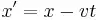 A little thought will show that the primed and unprimed coordinate systems are related by the Galilean Transform: