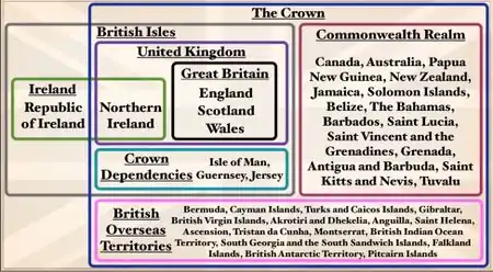 Americans often think that the terms "United Kingdom", "Britain", and "England" can be used interchangeably,[note 6] which just shows what they know. For the record: England, Scotland and Wales make up the island called Great Britain. Add Northern Ireland (and lots of other smaller islands) and you have the United Kingdom. The "British Isles" is the physical landmass which includes all the small islands. "Britain" (minus the "Great") doesn't actually have any meaning but tends to be used interchangeably with "Great Britain." See, easy.