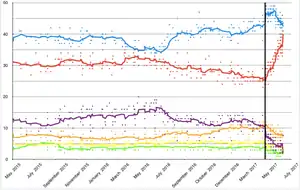 As of 2020, UKIP is polling so low (under 0.5%) it doesn't appear listed in General election opinion surveys.[27]