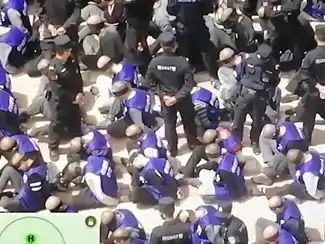 - China footage reveals hundreds of blindfolded and shackled prisoners. The Guardian.