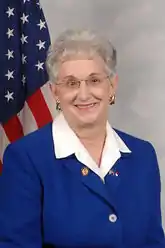 Virginia Foxx is a batshit insane Republican member of the American House of Representatives from North Carolina's fifth district (2005-present).[1] Like Michele Bachmann, she is one of those crazy ranting women in the House and unfortunately her seat is utterly safe, as her constituency is one of the most conservative in the country.
