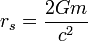Solving the equation with the stated mass gives a Schwarzschild radius of 4.7×109 light years.