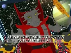 “”So, Scientology, you may have won THIS battle, but the million-year war for earth has just begun! Temporarily anozinizing our episode will NOT stop us from keeping Thetans forever trapped in your pitiful man-bodies. Curses and drat! You have obstructed us for now, but your feeble bid to save humanity will fail! Hail Xenu!!! |