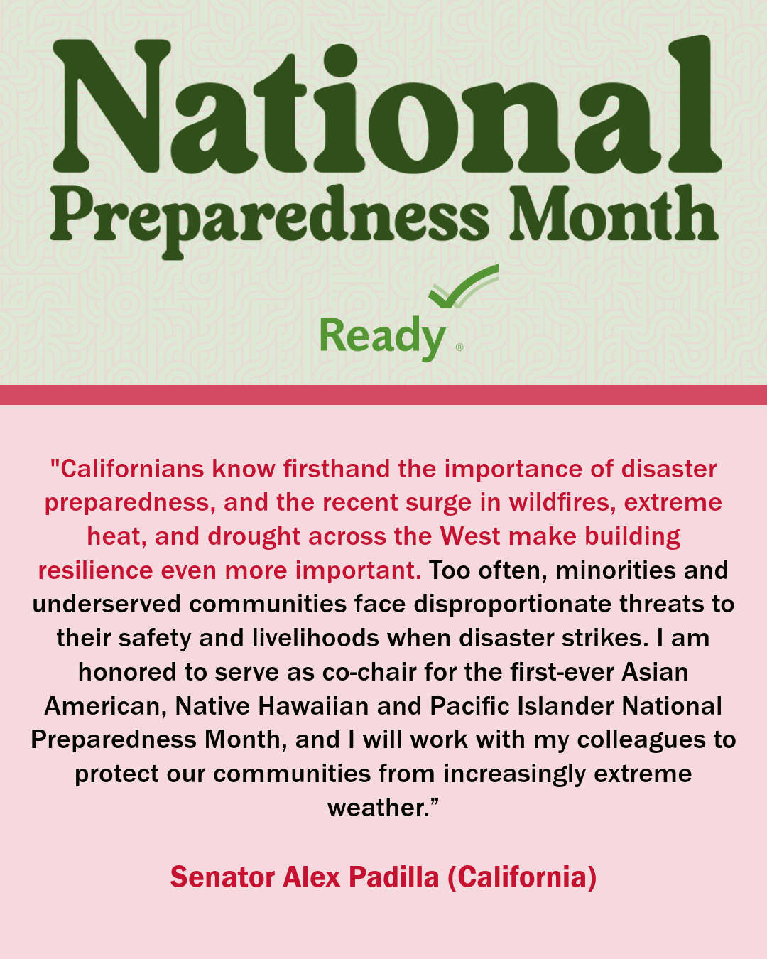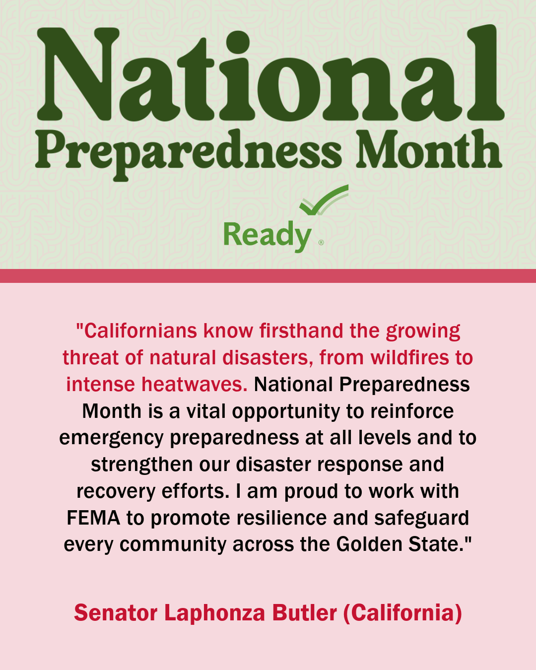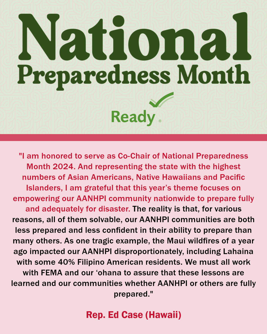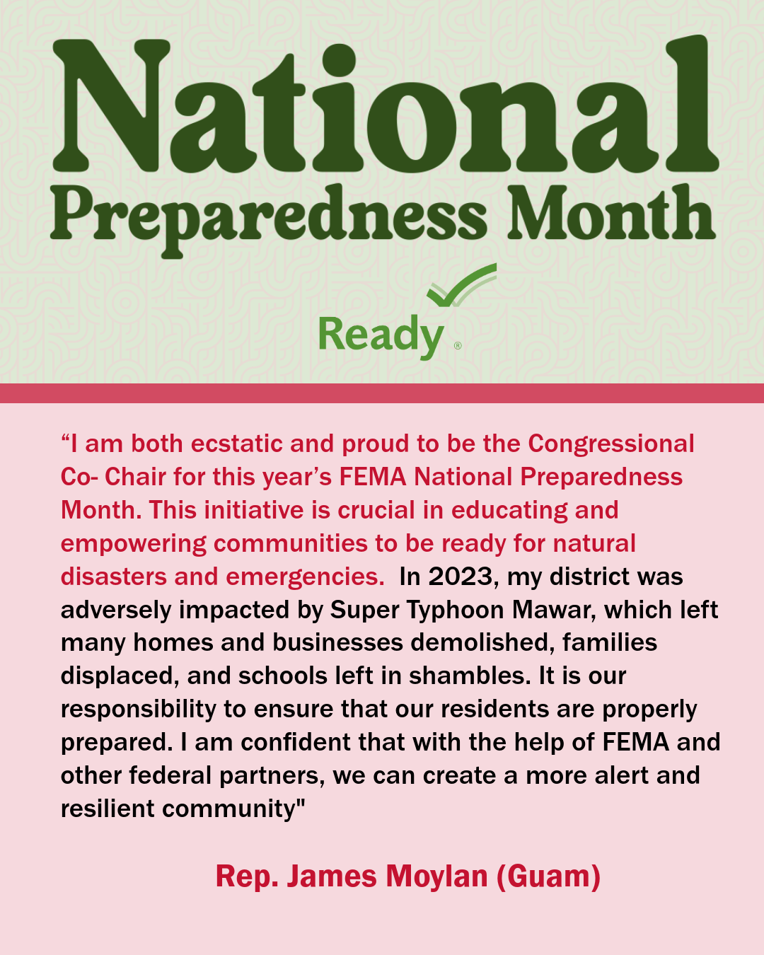 A collection of graphics featuring quotes from the 2024 National Preparedness Month Congressional Co-Chairs.