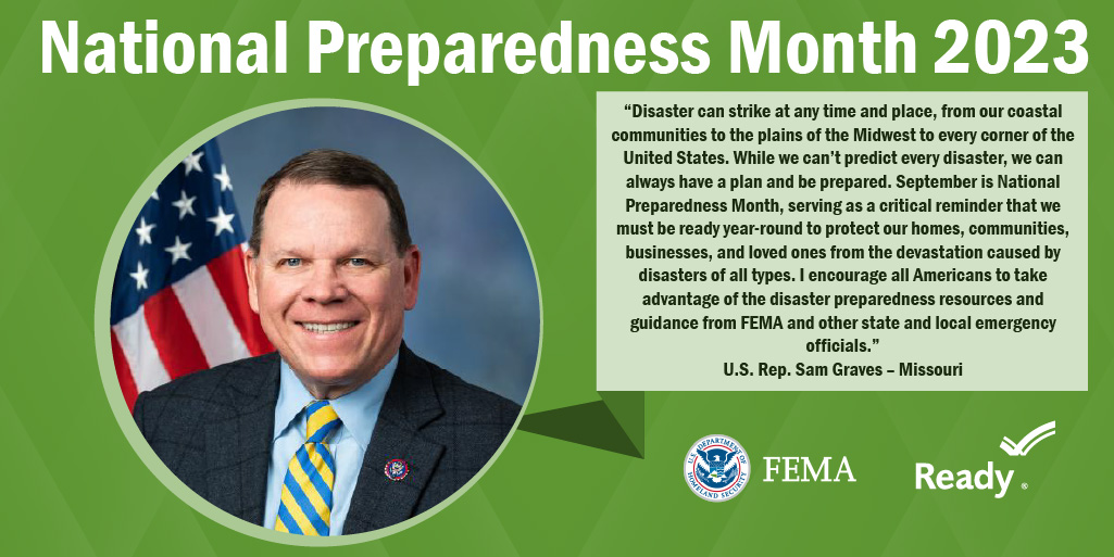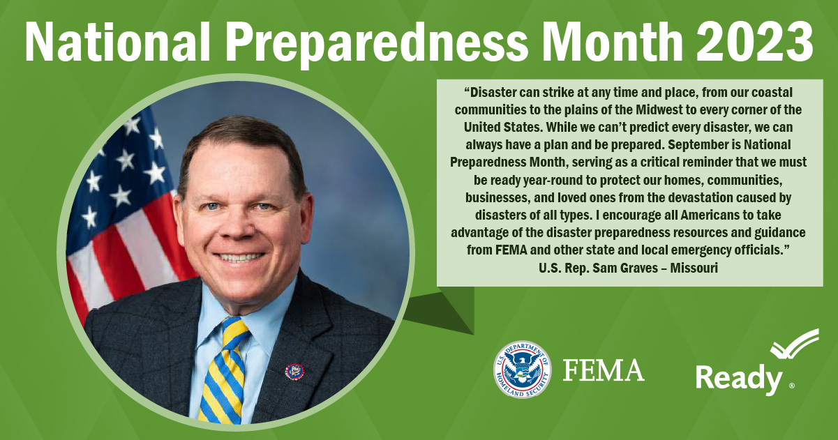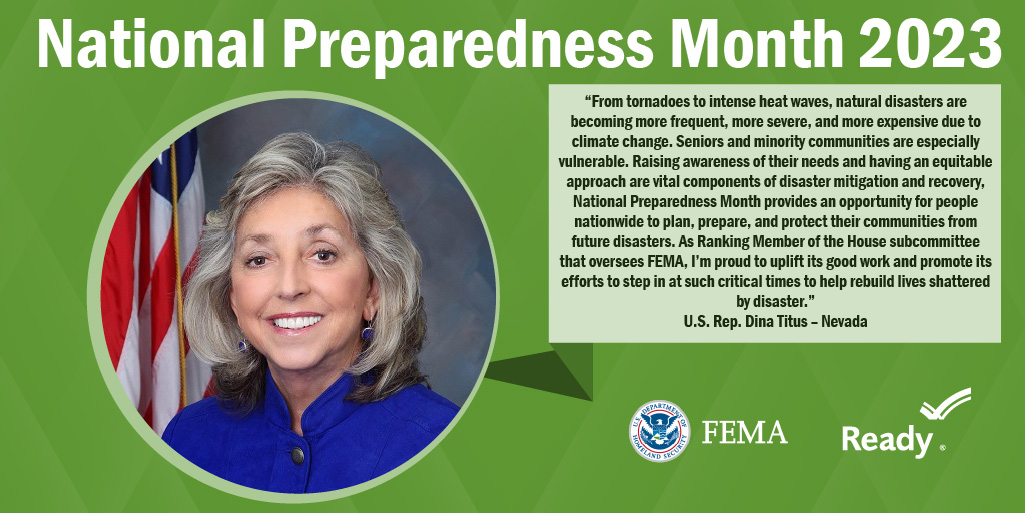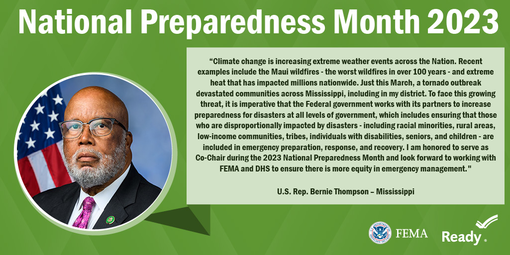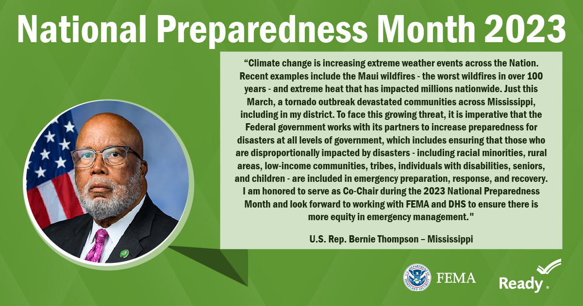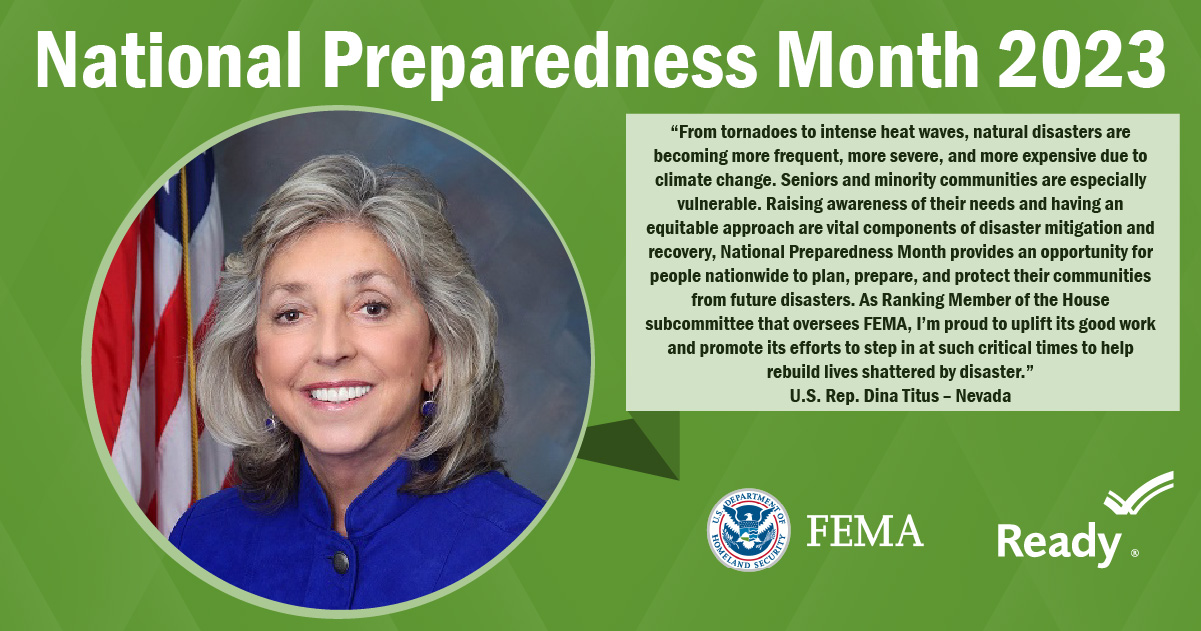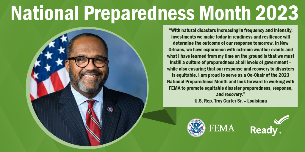 A collection of graphics featuring quotes from the 2023 National Preparedness Month Congressional Co-Chairs.