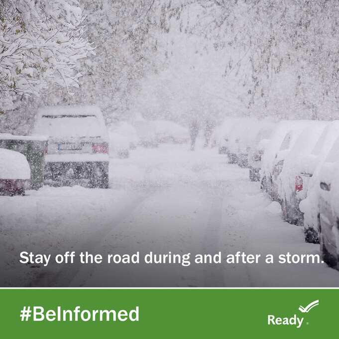 A truck plowing snow. Don't crowd the plow. For more tips visit www.ready.gov.